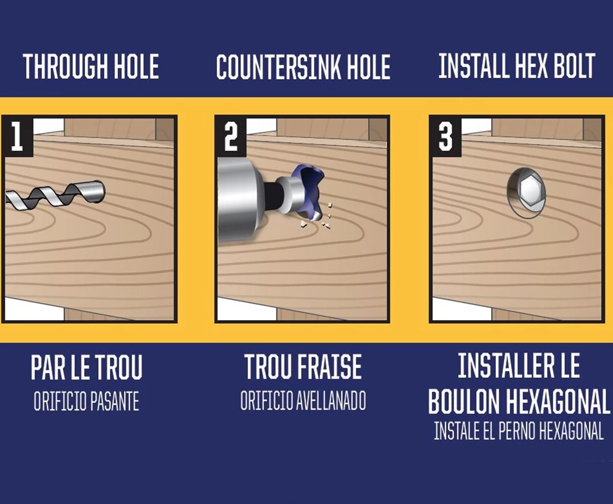 - 2-In-1 design drills both the through hole and countersink for hex bolt and washer installation