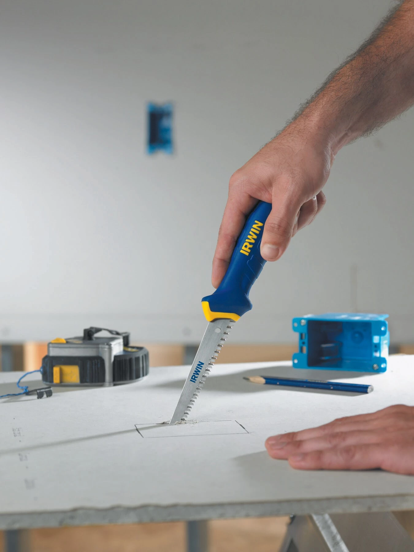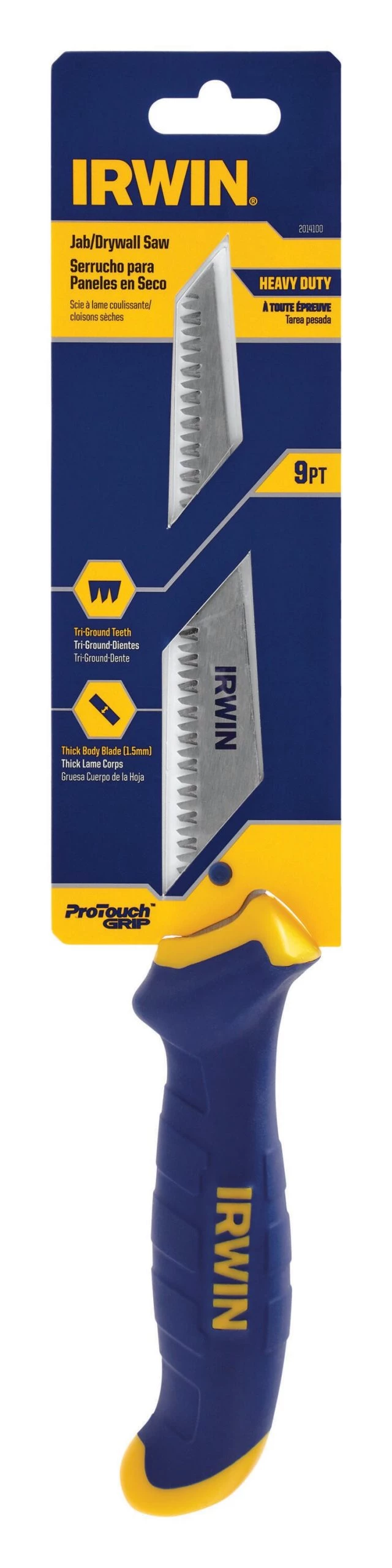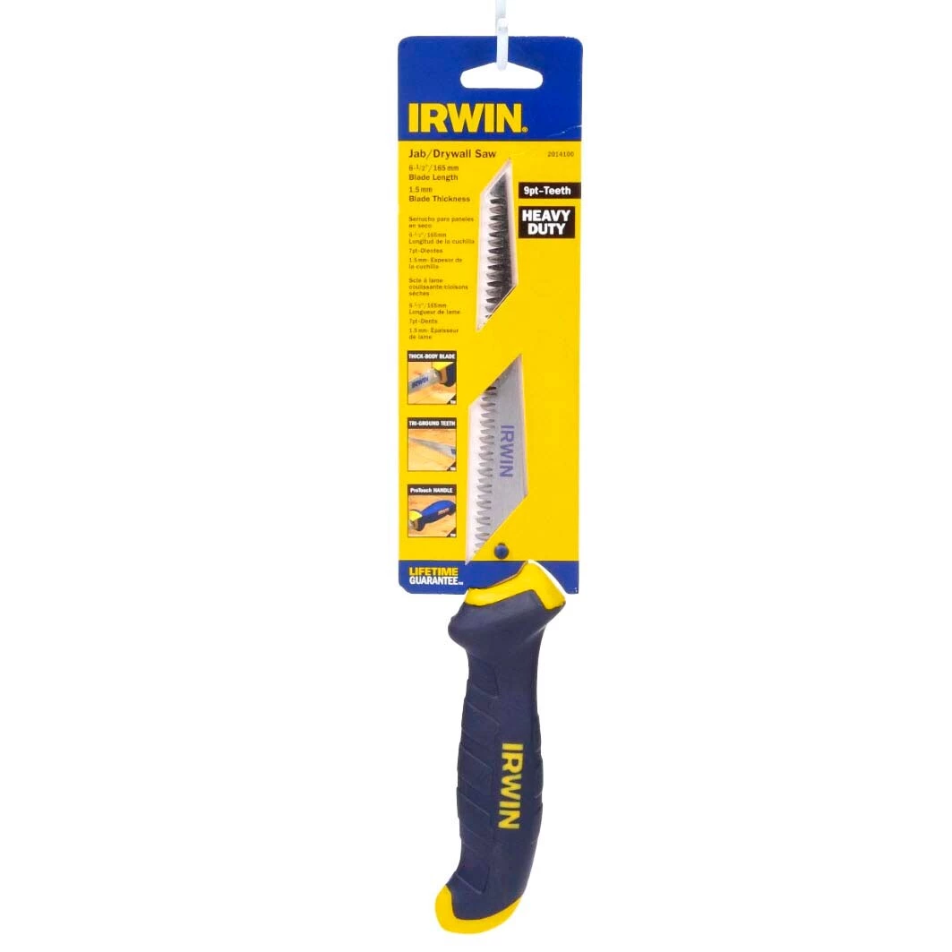 The IRWIN drywall jab-saw features a thick body. The blade is 1.5 mm thick. It has aggressive Tri-Flute teeth for superb cutting ability.