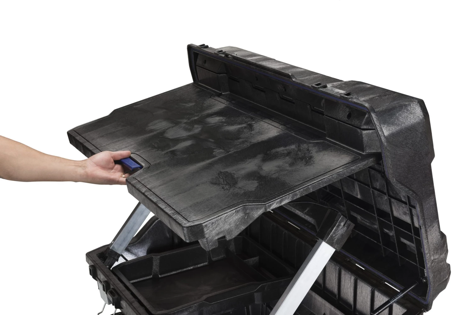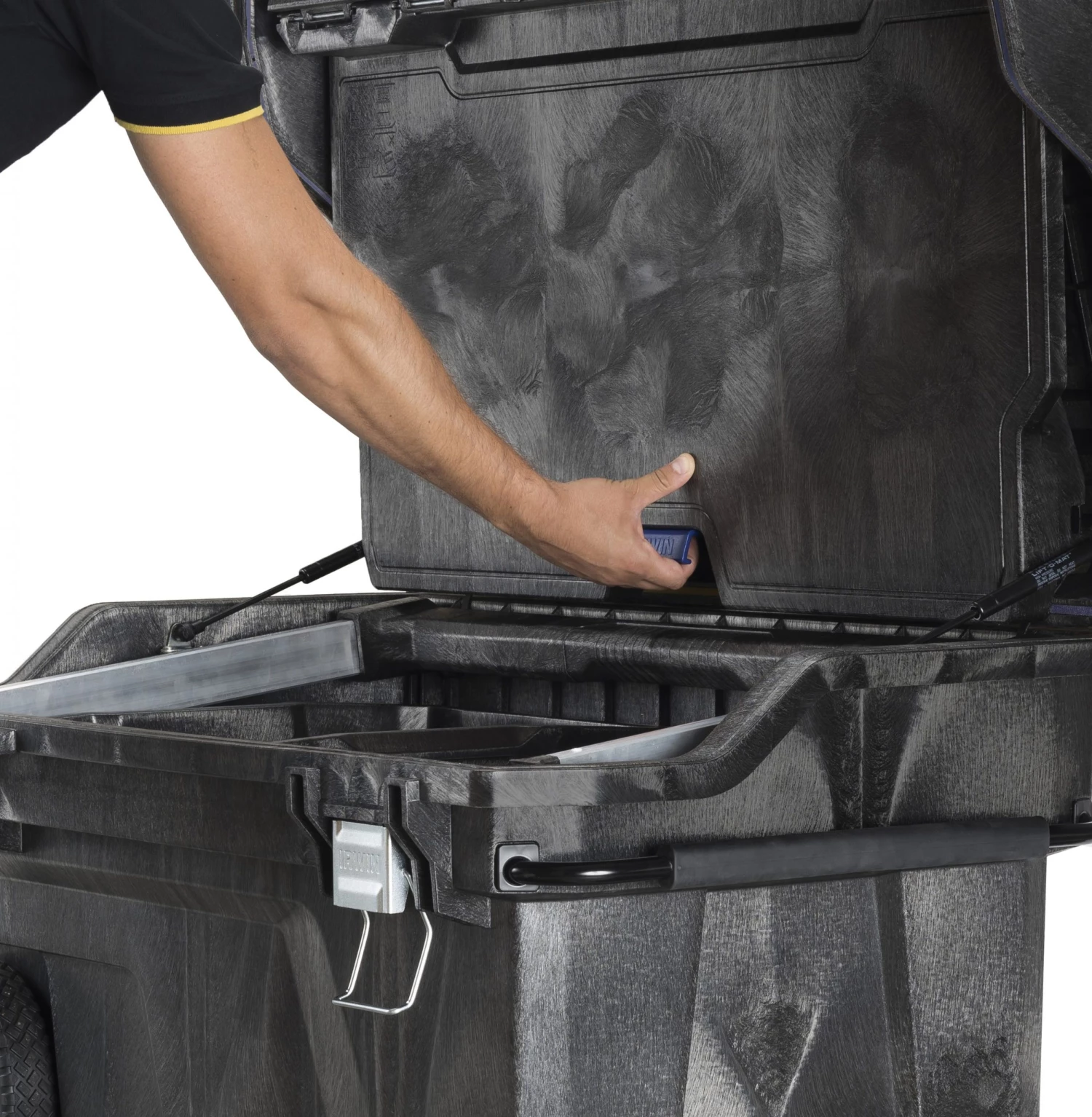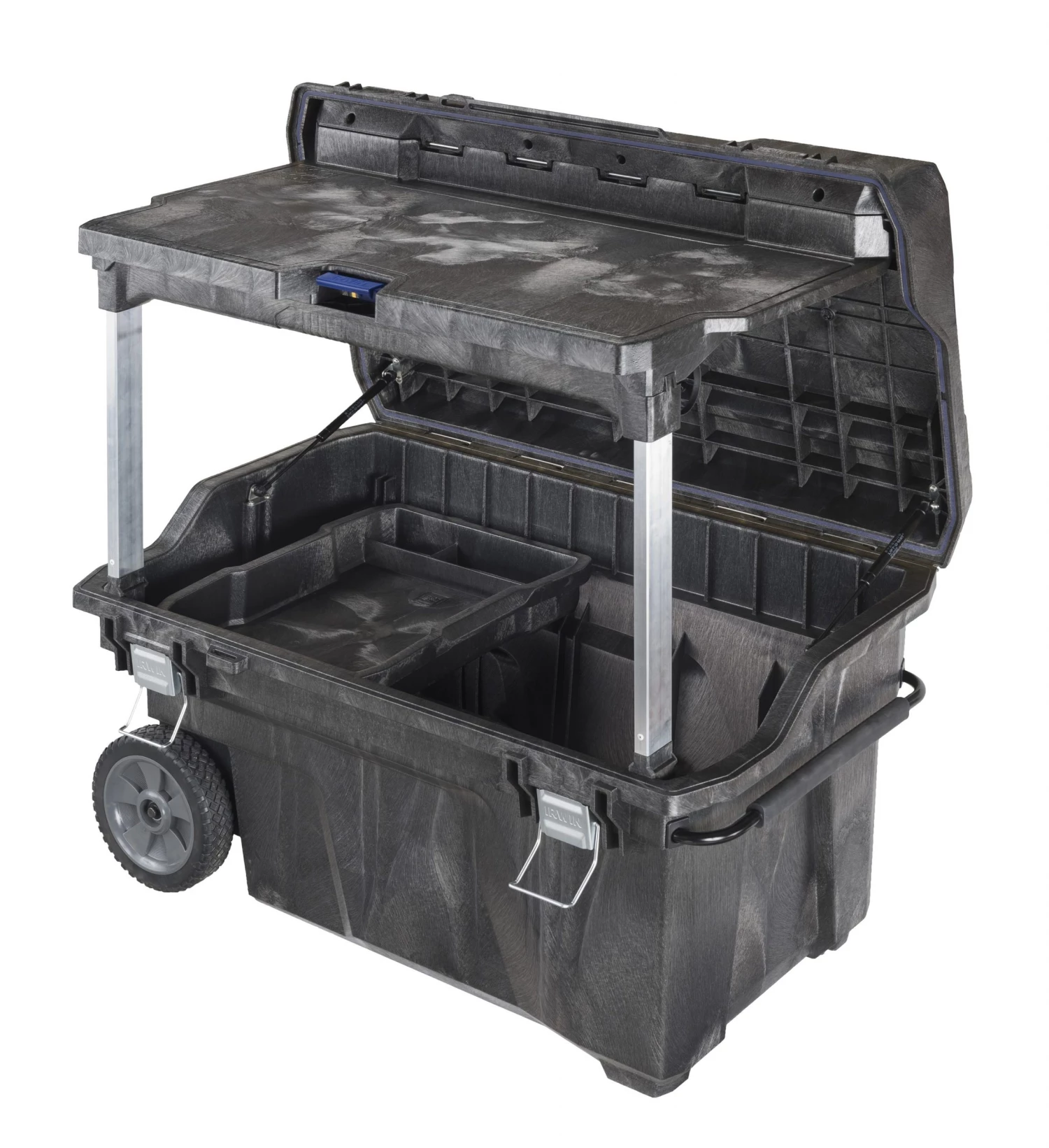 - Large mobile job box with a 48-gal storage capacity to hold a large number of tools and supplies