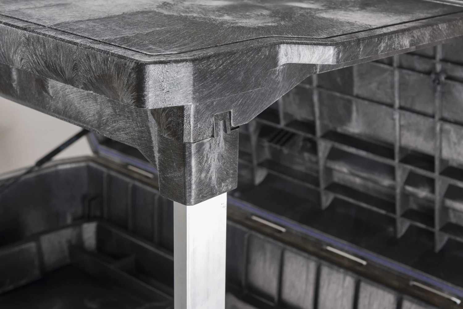 - Constructed of heavy-duty structural foam with metal supports and large metal latches
