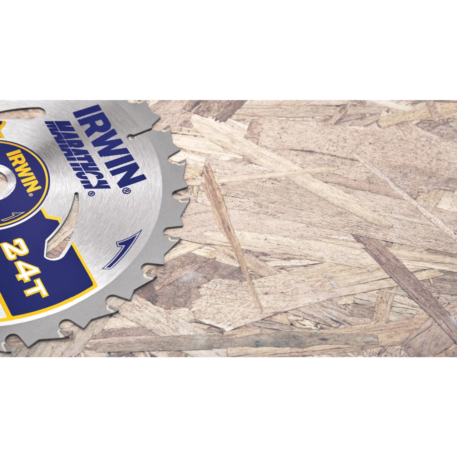 IRWIN Marathon saw blades are designed to meet the heavy demands and pressures of the jobsite. This is why the 7-1/4-in segmented carbide circular saw blade features a new and improved design that doesn’t compromise the durability. Its construction-grade carbide teeth quickly cut through wood and plywood. Every other tooth on this 24-tooth framing and ripping blade is thinner, ensuring up to 20% faster cuts. Because of its thin and sleek kerf, the blade requires 40% less effort from you. Meanwhile, the heat/vent and expansion slot design minimizes vibrations. This results in straighter, smoother cuts. Shop this IRWIN Marathon saw blade today.
